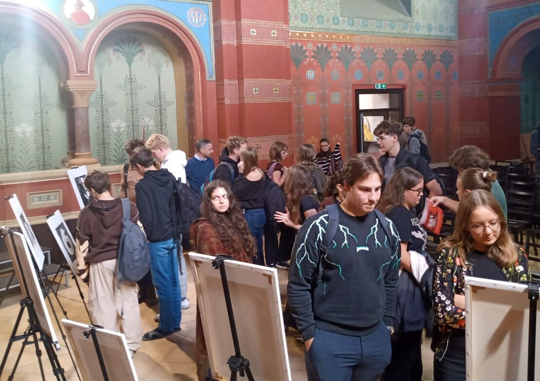 Nachdem bereits im April 2022 die Seliger-Gemeinde mit Thomas Oellermann, Historiker und Präsidiumsmitglied, die Ausstellung „Böhmen liegt nicht am Meer – Lebenswege sudetendeutscher Sozialdemokraten“ am Gymnasium in Teplitz/Teplice zeigen konnte, freute es die Verantwortlichen, dass auch die Ausstellung „GHT – frühe Werke von Georg Hans Trapp des Zeichners von Flossenbürg“ diese Woche im Vortragssaal des Gymnasiums präsentiert werden konnte. Auch hierzu erhielten die Oberstufenschülerinnen und -schüler eine historische Einführung in das Zeitgeschehen und die Person Georg Hans Trapp durch Thomas Oellermann.